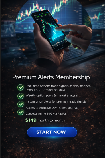 Get our options trades, 5 days a week, as it happens email / sms* stock & options trading alerts in nearly real time as we harness market opportunities, sharing when and where we deploy capital in the stock options markets.