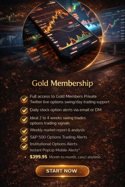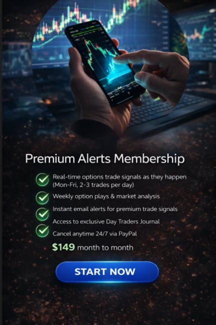 Get our options trades, 5 days a week, as it happens instantly* stock & options trading alerts in nearly real time as we harness market opportunities, sharing when and where we deploy capital in the stock options markets.