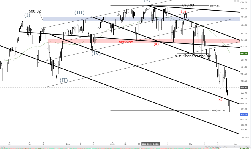 Next Downside Trigger: A sustained break below $631.00 = Primary Target: $626.63. Extreme Target: The .382 Fibonacci Retracement at $608.50, representing the "Ultimate Floor" on the weekly timeframe.
